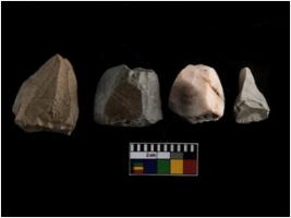 | Description / विवरण | There are n-4 of Cores. All are made of Quartz. All are fully fluted cores . 1 with trace of crested ridge flake. |