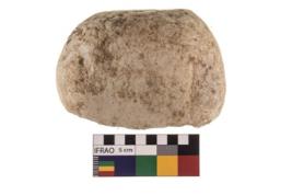 | Description / विवरण | A partially broken specimen of roughly round shaped hammer stone with battered periphery along with the circumference. |
