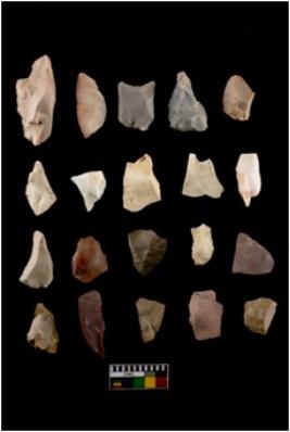 | Description / विवरण | There are n-20 of intact flake cores made up of Chert. Some of them have bulge of percussion and some are flat flakes. |