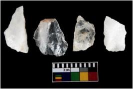 | Description / विवरण | There are n-4 of intact utilized flakes made up of Quartz. Some of them have bulge of percussion and some are flat flakes. |