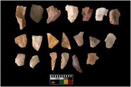 | Description / विवरण | There are n-20 of intact flake cores made up of Chert. Some of them have bulge of percussion and some are flat flakes. |