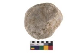 | Description / विवरण | Complete specimen of a hammer stone with battered surface made from quartz |
