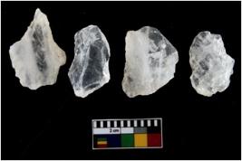 | Description / विवरण | There are n-4 of intact utilized flakes made up of Quartz. Some of them have bulge of percussion and some are flat flakes. |