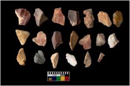 | Description / विवरण | There are n-20 of intact flake cores made up of Chert. Some of them have bulge of percussion and some are flat flakes. |