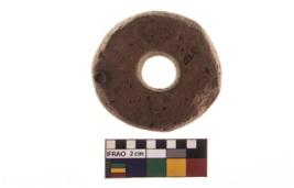 | Description / विवरण | The object is a spindle whorl. It has a single perforation in the centre. It is circular in shape. It is light brown in colour. |