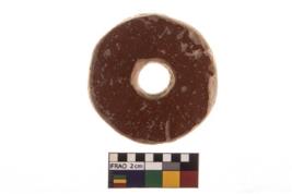 | Description / विवरण | The object is a spindle whorl. It has a single perforation in the centre. It is circular in shape. It is red in colour. |