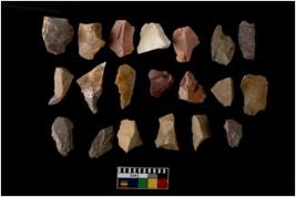 | Description / विवरण | There are n-20 of intact flake cores made up of Chert. Some of them have bulge of percussion and some are flat flakes. |