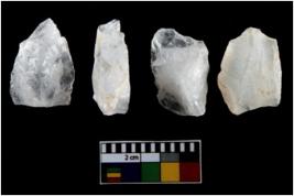 | Description / विवरण | There are n-4 of intact utilized flakes made up of Quartz. Some of them have bulge of percussion and some are flat flakes. |