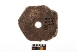 | Description / विवरण | The object is a spindle whorl. It has a single perforation in the centre. It is circular in shape. It is light brown in colour. |