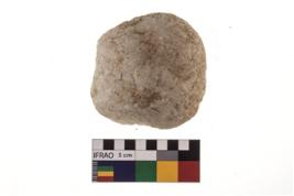 | Description / विवरण | A partially broken specimen of roughly round shaped hammer stone with battered periphery along with the circumference. |