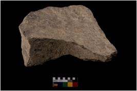 | Description / विवरण | The rectangular shape legged quern, half broken, working platform is slightly concave with broken legs. |