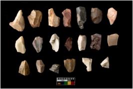 | Description / विवरण | There are n-20 of intact flake cores made up of Chert. Some of them have bulge of percussion and some are flat flakes. |