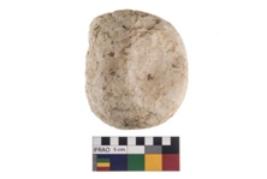 | Description / विवरण | Complete specimen of a hammer stone with battered surface made from quartzite |