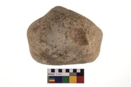 | Description / विवरण | A partially broken specimen of roughly round shaped hammer stone with battered periphery along with the circumference. |