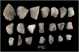| Description / विवरण | There are n-20 of intact flake cores made up of Quartz. Some of them have bulge of percussion and some are flat flakes. |