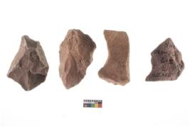 | Description / विवरण | Four worked utilised flakes. Many a times tapering at one end. |