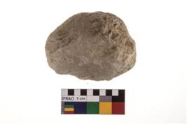 | Description / विवरण | A partially broken specimen of roughly round shaped hammer stone with battered periphery along with the circumference. |