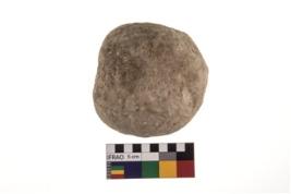 | Description / विवरण | A partially broken specimen of roughly round shaped hammer stone with battered periphery along with the circumference. |
