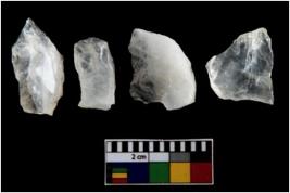 | Description / विवरण | There are n-4 of intact utilized flakes made up of Quartz. Some of them have bulge of percussion and some are flat flakes. |