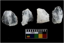 | Description / विवरण | There are n-4 of intact utilized flakes made up of Quartz. Some of them have bulge of percussion and some are flat flakes. |