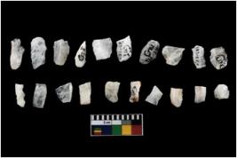 | Description / विवरण | There are n-20 of microlithic blades. They bladets with marginal retouch and backet bladets. They are parallel, some with one and others with two mid ridges. Both lateral sides have been retouched. |
