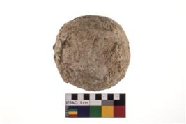 | Description / विवरण | A partially broken specimen of roughly round shaped hammer stone with battered periphery along with the circumference. |