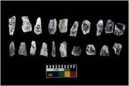 | Description / विवरण | There are n-20 of microlithic blades. They bladets with marginal retouch and backet bladets. They are parallel, some with one and others with two mid ridges. |