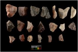 | Description / विवरण | There are n-20 of intact flake cores made up of Chert. Some of them have bulge of percussion and some are flat flakes. |