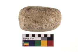 | Description / विवरण | A partially broken specimen of roughly round shaped hammer stone with battered periphery along with the circumference. |