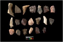 | Description / विवरण | There are n-20 of intact flake cores made up of Chert. Some of them have bulge of percussion and some are flat flakes. |