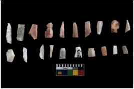 | Description / विवरण | The total number of specimens are n 20 of chert. The blades have a flat dorsal surface, and double ridges going parallel to its length. Some of the microliths have steep retouch at their tip. . |