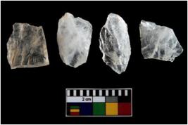 | Description / विवरण | There are n-4 of intact utilized flakes made up of Quartz. Some of them have bulge of percussion and some are flat flakes. |