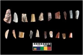 | Description / विवरण | The total number of specimens are n 20 of chert. They bladets with marginal retouch and backet bladets. The blades have a flat dorsal surface, and double ridges going parallel to its length. Some of the microliths have steep retouch at their tip. the specimens show low proportions. |