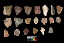 | Description / विवरण | There are n-20 of intact flake cores made up of Chert. Some of them have bulge of percussion and some are flat flakes. |
