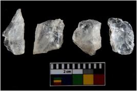 | Description / विवरण | There are n-4 of intact utilized flakes made up of Quartz. Some of them have bulge of percussion and some are flat flakes. |