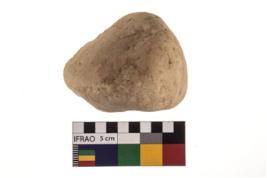 | Description / विवरण | A partially broken specimen of roughly round shaped hammer stone with battered periphery along with the circumference. |