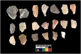 | Description / विवरण | There are n-20 of intact flake cores made up of Chert. Some of them have bulge of percussion and some are flat flakes. |