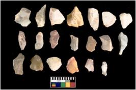 | Description / विवरण | There are n-20 of intact flake cores made up of Chert. Some of them have bulge of percussion and some are flat flakes. |