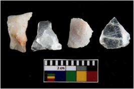 | Description / विवरण | There are n-4 of intact utilized flakes made up of Quartz. Some of them have bulge of percussion and some are flat flakes. |
