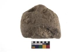 | Description / विवरण | Partially broken specimen of an oval shaped muller stone made up from sandstone |