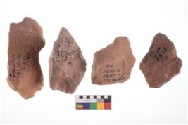 | Description / विवरण | Four worked utilised flakes. Many a times tapering at one end. |