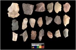 | Description / विवरण | There are n-20 of intact flake cores made up of Chert. Some of them have bulge of percussion and some are flat flakes. |