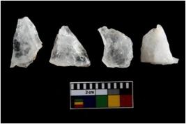 | Description / विवरण | There are n-4 of intact utilized flakes made up of Quartz. Some of them have bulge of percussion and some are flat flakes. |