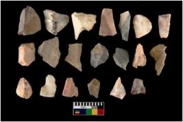 | Description / विवरण | There are n-20 of intact flake cores made up of Chert. Some of them have bulge of percussion and some are flat flakes. |