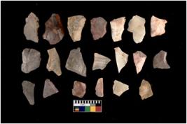 | Description / विवरण | There are n-20 of intact flake cores made up of Chert. Some of them have bulge of percussion and some are flat flakes. |