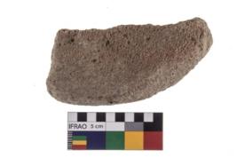 | Description / विवरण | A partially broken specimen of an oval rubber stone with oval section, with flat base. |