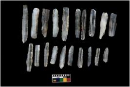 | Description / विवरण | There are n-20 of microliths. All are made up of Chalcedony. All of them are intact. They show variation in size and shape. Some of them are blunted back blades, crescent and truncated blades. All blades have retouched sides. |
