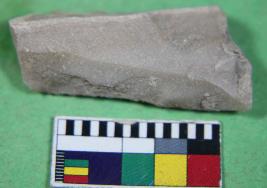 | Description / विवरण | Fragment of standard size chert blade showing thick broad parallel sided, one end truncated and tringular in section. Its surface is smooth. |