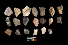| Description / विवरण | There are n-20 of intact flake cores made up of Chert. Some of them have bulge of percussion and some are flat flakes. |