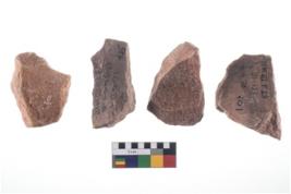 | Provenance / उद्गम/क्षेत्र | Bhimbetka, District-Raisen, BTK-1975, Trench-IIIF23, E4, F2, F4, J6, L-N A, Depth-121-125, 136-140, 116-120, Artifact No.-709, 601, 725, 214, Date- 2 4 1975, 4 4 1975, 6 4 1975, 29 4 1975 |